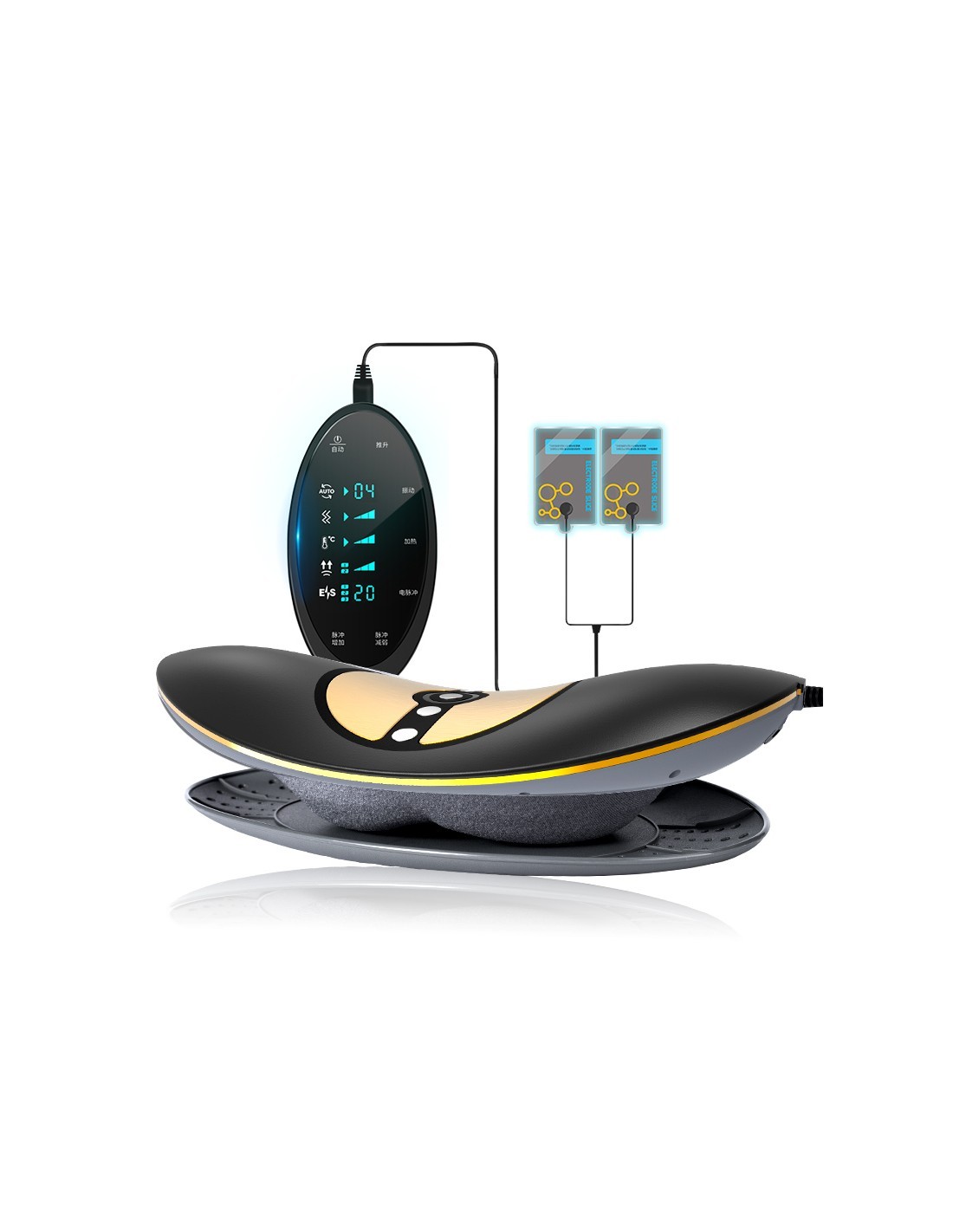 Das Lumbaltraktionsgerät ist mit zwei 3000 RMP-Motoren ausgestattet, die Hochfrequenzvibrationen zur Linderung von Schmerzen im unteren Rückenbereich und zur Entspannung der Rückenmuskulatur erzeugen. Wir bieten Massagemodi mit einstellbarer Vibration in drei Stufen.