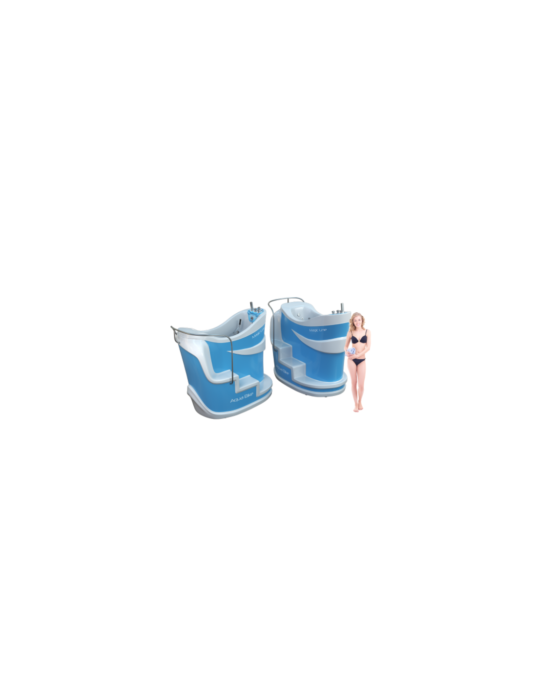 AquaBike Magic ist ein Gerät, das Aquacycling mit Massage kombiniert. Es hat eine abnehmende, Anti-Cellulite- und entspannende Wirkung. Übungen auf dem Heimtrainer (Wasserrad) zusammen mit dem hydrostatischen Widerstand des Wassers bringen sehr schnelle Ergebnisse. Die Hydromassage, die während der Sitzung stattfindet, entspannt und stimuliert die Lymphe und das freigesetzte Ozon oxidiert die abgestorbene Haut. Die Treppe und das Geländer wurden sicherheitsgemäß entworfen.