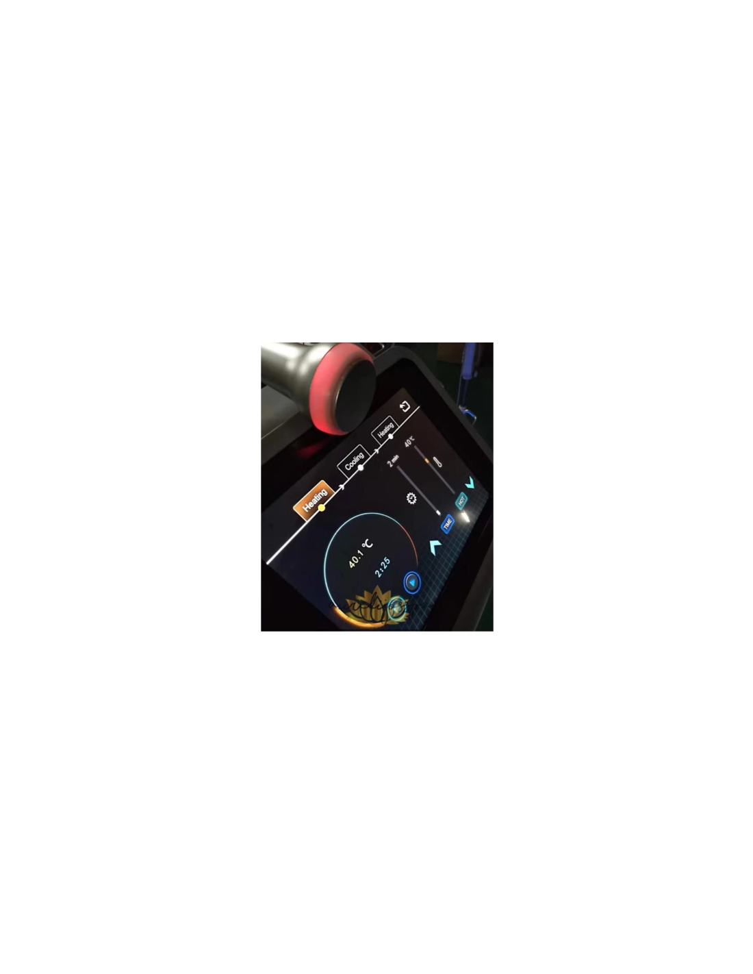 · 5 Min.: Erwärmung - Dies ist eine vorübergehende Phase, die darauf abzielt, den Blutfluss zur Gesichtshaut allmählich und langsam von 36 ° C (normale Temperatur) auf 40 ° C zu beschleunigen.